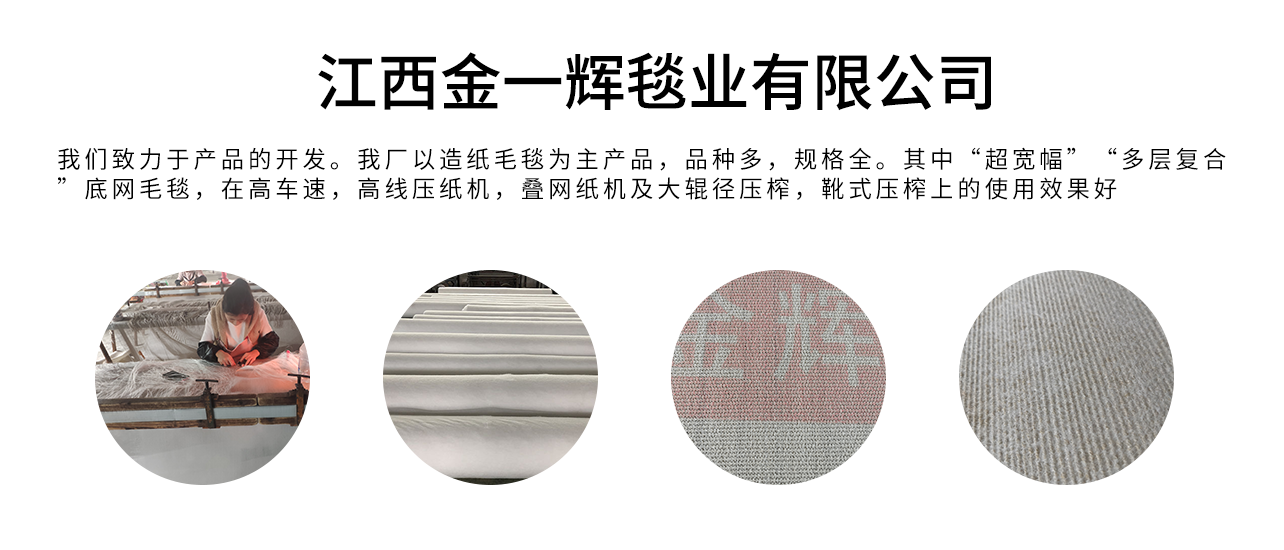 按照在造紙機上的部位可分為濕毯、上毯和干毯。濕毯在造紙機上帶水運轉,作用是壓榨紙坯使之脫水和紙面平滑。濕毯濾水性和彈性都